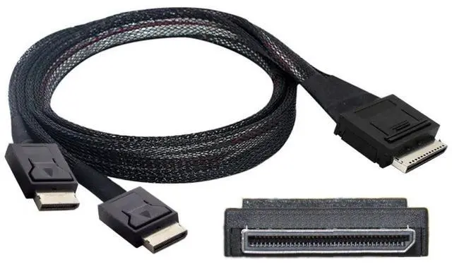 This OCuLink 8x cable can be used to connect internal devices, e. g. a backplane with OCuLink SFF-8611 connector to a controller with OCuLink SFF-8611 8x connector. ^^ OCuLink SFF-8611 8x 80pin 1 male to 2 OCuLink SFF-8611 8x 80pin male. ^^ Lock to