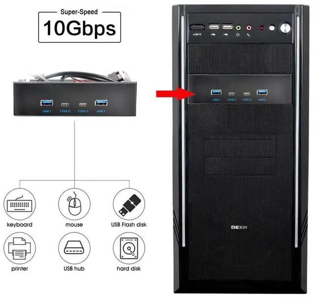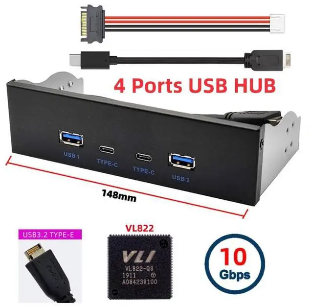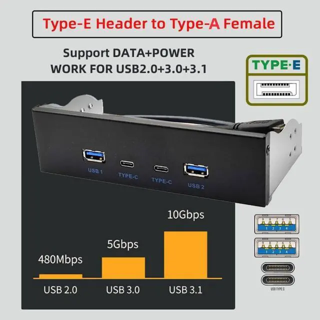 2) Wide Compatibility: Fully compatible with Windows 11/10/ 8.1 /8/7/Vista/XP. Transform your 5.25" CD drive space into a versatile hub featuring 4 USB 3.1 Gen 2 USB ports. Enhance the scalability of your desktop computer to meet a variety of needs.