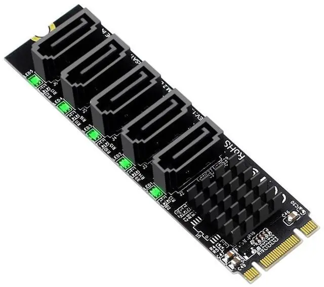 ^^ 2) Note: The NGFF slot must support the SATA protocol, otherwise it cannot be recognized. ^^ 3) JMB575 supports cascaded mode which enables maximum 5 drives connected to one host. ^^ 4) With proper setting, the chip can be configured as 1 to 5 ports SATA 6Gbps Port or a 5 to 1 port SATA 6Gbps Port. ^^ 5) JMB575 is a single chip solution. It integrated 5 independent SATA channels and a micro-processor.