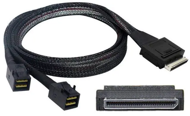 This OCuLink 8x cable can be used to connect internal devices, e. g. a backplane with SFF-8643 connector to a controller with OCuLink SFF-8611 8x connector. ^^ OCuLink SFF-8611 8x 80pin male to dual SFF-8643 4x 36pin male. ^^ Lock to