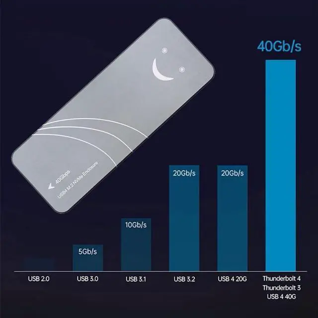 ^^ Multiple Transmission Protocols: The USB 40G M. 2 Enclosure is compatible with multiple transmission protocols and interfaces, ensuring broad adaptability. It supports USB 4 / Thunderbolt 3 / Thunderbolt 4 with a maximum transmission rate of 40Gbps. Due to protocol conversion losses, the theoretical maximum read speed is 3200Mb/s, and the theoretical maximum write speed is 3200Mb/s. In the USB 3.2 Gen 2X2 20G protocol, the maximum speed reaches 20Gbps.