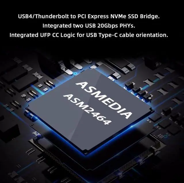 Speed: The ASM2464 chipset NVMe Enclosure 40G transforms your M. 2 NVMe SSD into a compact and portable mobile hard drive enclosure. It features a USB 4.0 Type-C output interface, supporting a maximum transmission speed of up to 40Gbps. Equipped with the latest ASM2464 chip, it is compatible with Thunderbolt3/4 and supports PCIe and USB Dual Tunnels. ^^ Support for NVMe M.