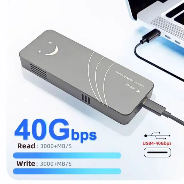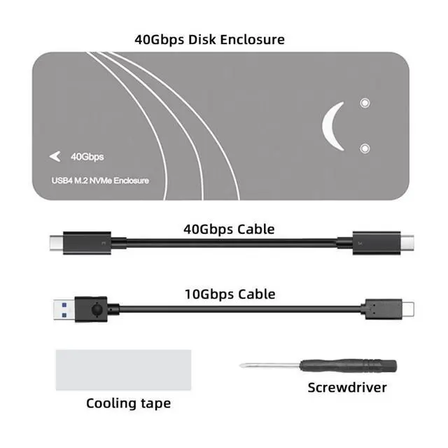 1) 40Gbps Speed: The ASM2464 chipset NVMe Enclosure 40G transforms your M. 2 NVMe SSD into a compact and portable mobile hard drive enclosure. It features a USB 4.0 Type-C output interface, supporting a maximum transmission speed of up to 40Gbps. Equipped with the latest ASM2464 chip, it is compatible with Thunderbolt3/4 and supports PCIe and USB Dual Tunnels.