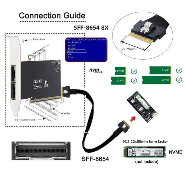High-speed data transfer: The adapter is designed for use with ssd that use SFF-8654 8x connectors, allowing for fast and reliable data transfer at speeds of up to 64Gbps.