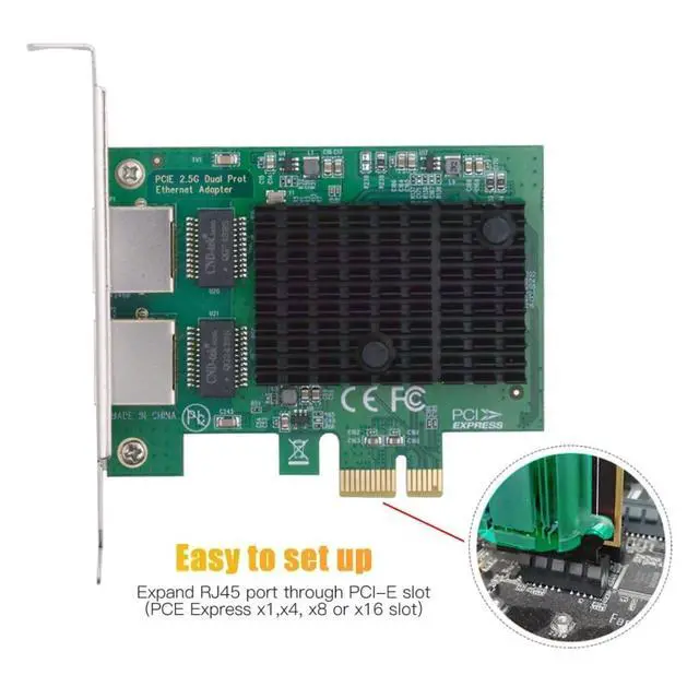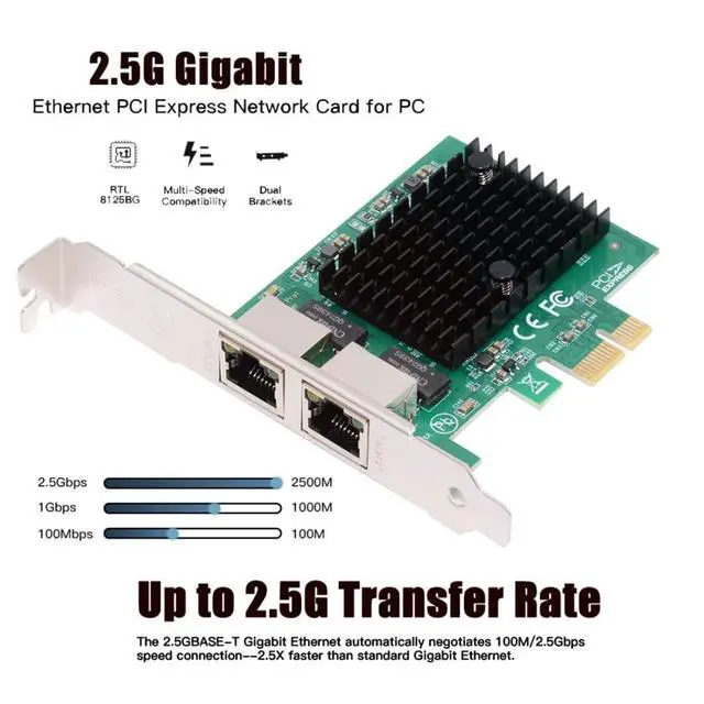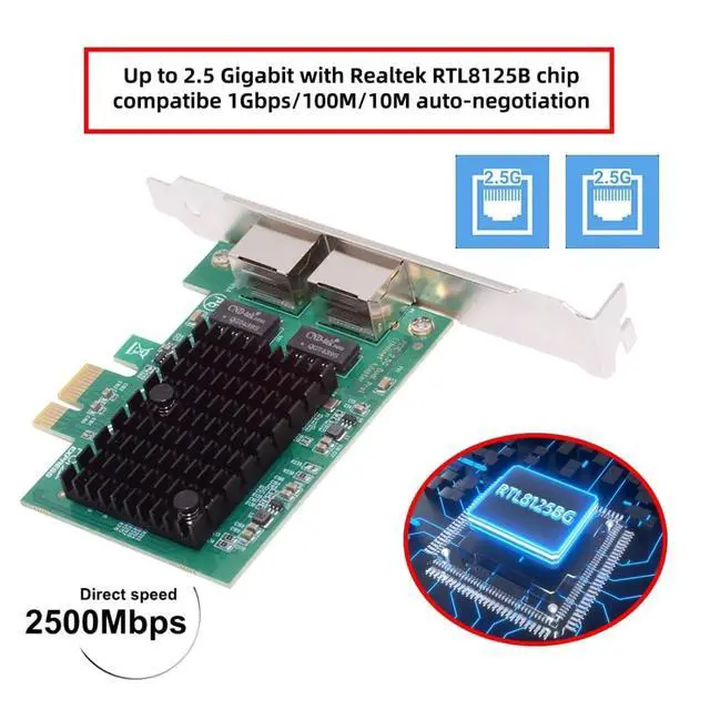 (Note: Compatible with PCI-E slots only, not for PCI slots. ) ^^ 4) Compatible with Windows 11, Windows 10, and Linux systems, this network card guarantees seamless compatibility. Support multiple installation such as PC, server, workstation, NAS, This eradicates worries about system compatibility and grants you the complete convenience of high-speed networking. ^^ 5) Up to 2.5 Gigabit with Realtek RTL8125B chip, compatibe 1Gbps/100M/10M auto-negotiation, support standard Cat5e or above UTP at distances up to 100m; Minimizes electromagnetic interference, enhancing stability and reliability with every connection. Excellent heat dissipation can reduce the temperature quickly and maintain the stability of network transmission.