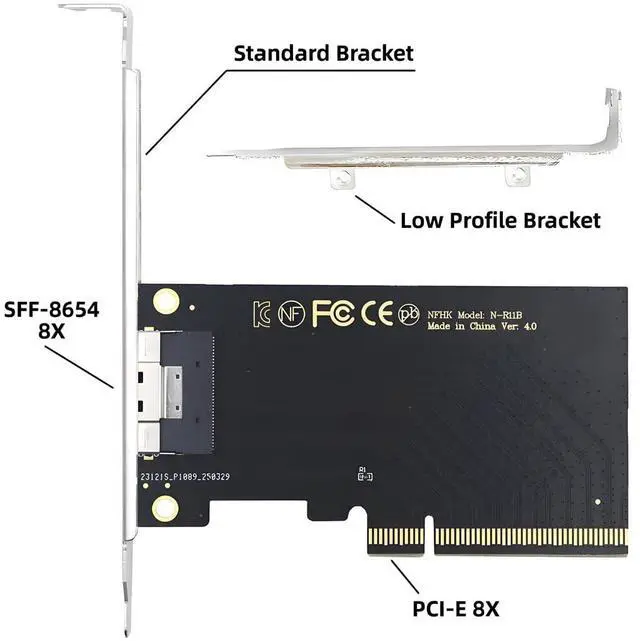 Easy to use: Simply plug in the SFF-8654 8x 74Pin end of the adapter into your device and the SFF-8654 8x 74pin end into your external hard drive, and you're ready to go. It can be connected e. g. one SSD or eGPU Graphics Card by using an optional cable. Suitable for small hosts, desktops, laptops, etc. to convert PCIE sockets to SFF-8654 8X sockets, with fixing holes for fixing. It transmits PCI Express 4.0 signals using the PCIE protocol; Support PCIE 4.0 data transmission, Data transfer rate up to 32Gbps, Support connecting GPU graphics card, SSD, expansion card, etc., backward compatible with PCIE 3.0. Transform your works with this cable adapter, facilitating integration of PCI-E into systems requiring SFF-8654 connection; Elevates your system's capabilities with our adapter, ensuring a stable and robusts connection investments without compromising on space or convenience. With 8cm low profile and 12cm standard bracket.