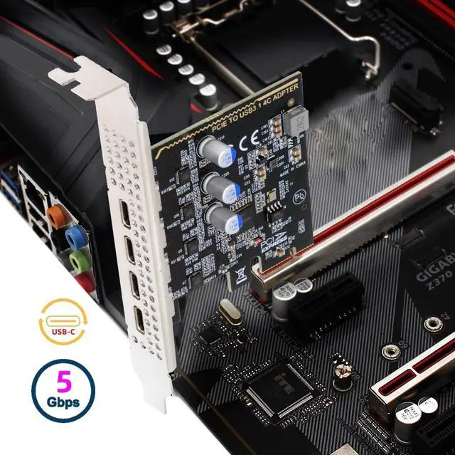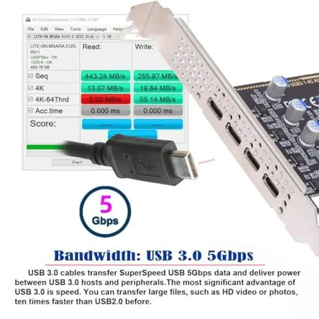 ^^ 5Gbps Data transfer: Support 5Gbps data rating and 5V power. Compliant with USB Base Specification 3.1 / 3.0, Output USB 3.0 Type-C interface. Compliant with USB 2.0 Hi-Speed (480Mbps), USB 1.1 Low-Speed ( 1.5M bps). ^^ No Need any extra Power Supply and get power from PCI-E 1X port, The connector only transfer the USB 3.1 / 3.0 data and power, Can't connect USB-C video/audio/thunderbolt device. ^^ Compatible with Windows 7, 8, 10, 11, and Mac OS 10.8. 2 and above. Win 10/11, Mac OS, and Linux does not need any driver. It requires installing a driver when operating on Windows 7. ^^ Type-C connector is the new design for USB 3.1, Reversible Design for Type-C connector, Reversible plug orientation Cable direction, Support 5V/3A power charging. With 8cm low profile and 12cm standard bracket.