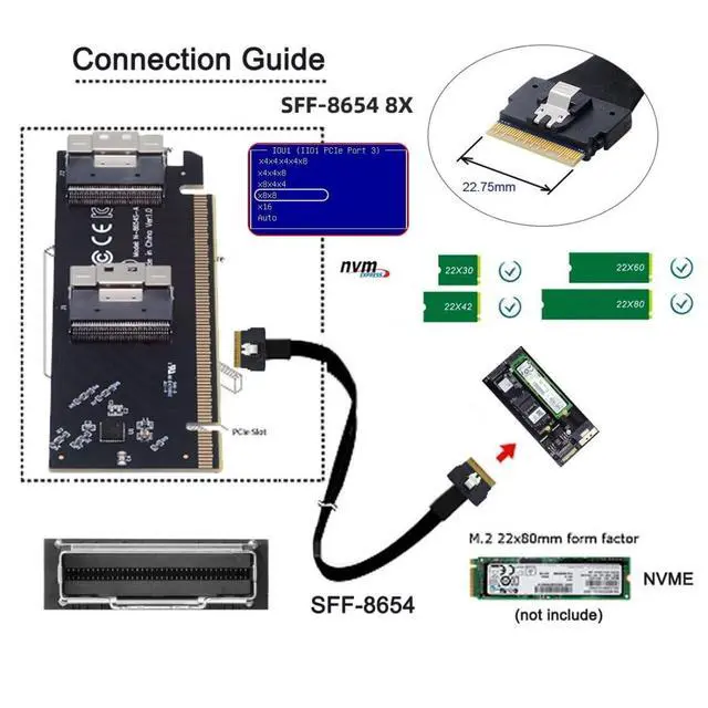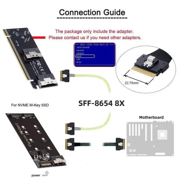 High-speed data transfer: The adapter is designed for use with ssd that use SFF-8654 8x connectors, allowing for fast and reliable data transfer at speeds of up to 64Gbps.