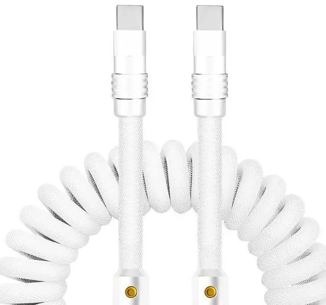 chubbycable Curly Chubby - 240W Coiled USB C Cable Spring Retractable Fast Charging Cable for Car Compatible with CarPlay, Android Auto, White, Type-C to Type-C, 2.29FT-3.6FT