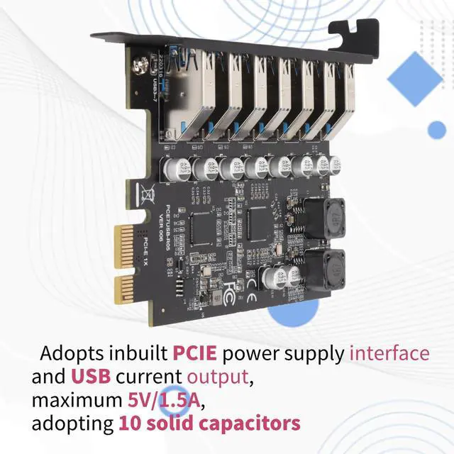 Stable Power: This expansion card adopts inbuilt PCIE power supply interface and USB current output, maximum 5V/1.5A, adopting 10 solid capacitors, which ensures high stability of USB power supply.