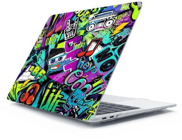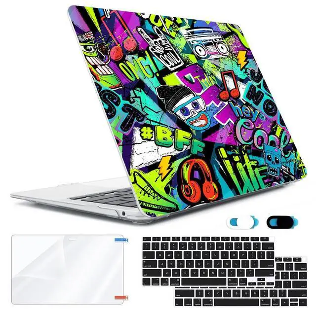 HOHAIYOO Compatible with MacBook Air 13 inch Case 2022 2021 2020-2018 Release M1 A2337 A2179 A1932 with Touch ID, Hard Print Case + Keyboard Cover + Webcam Cover + Screen Protector, Cool Graffiti