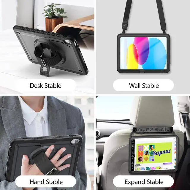 [Unique hand strap& Portable Shoulder Strap& Rotating Stand] - Provide the protection and convenience when you play or work with case for iPad. Hang it anywhere for your entertainment, makes you using case for iPad 11th/10th Generation easily. 360 Degrees rotating Kickstand provides convenient viewing with hand strap and pen slot, easy to use your case for iPad in your outdoor travelling, working, gaming with kids