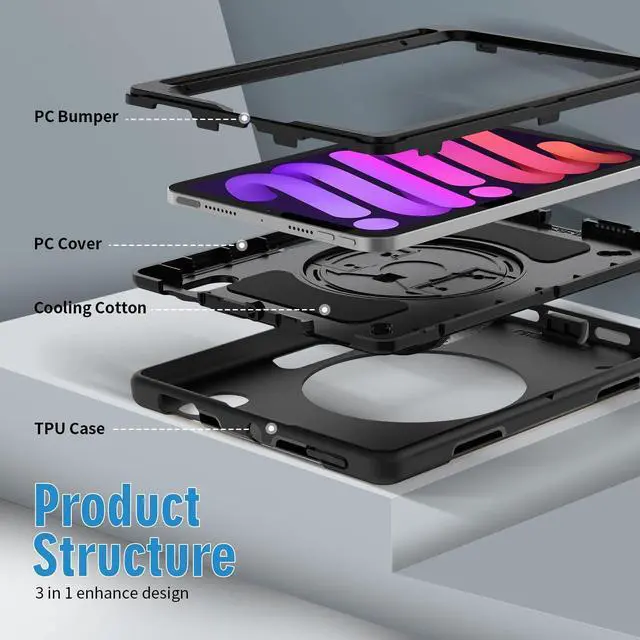 [(360deg All-Round Defense)] Military-grade shockproof structure with reinforced corners and cushioning technology delivers full-body protection against drops up to 6 feet for your A17 Pro iPad Mini
