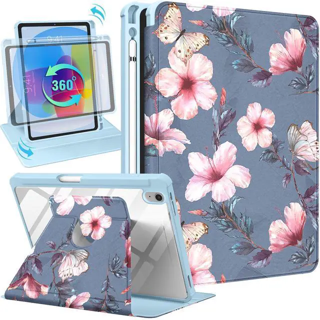 Uppuppy for iPad A16 Case - for iPad 10th Generation Case 10.9 Inch Women Girls Cute Flower Girly Butterfly Teens Pretty Kawaii Aesthetic Rotating Stand Folio Tablet Cover for Apple 10/11 2025