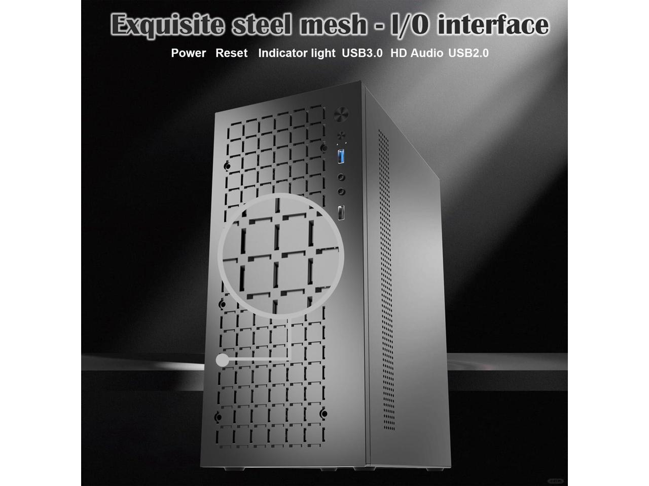 - High PerformanceE Airflow: Micro atx PC case perforated front directly filtered air through the case to cool down components and enhance performance