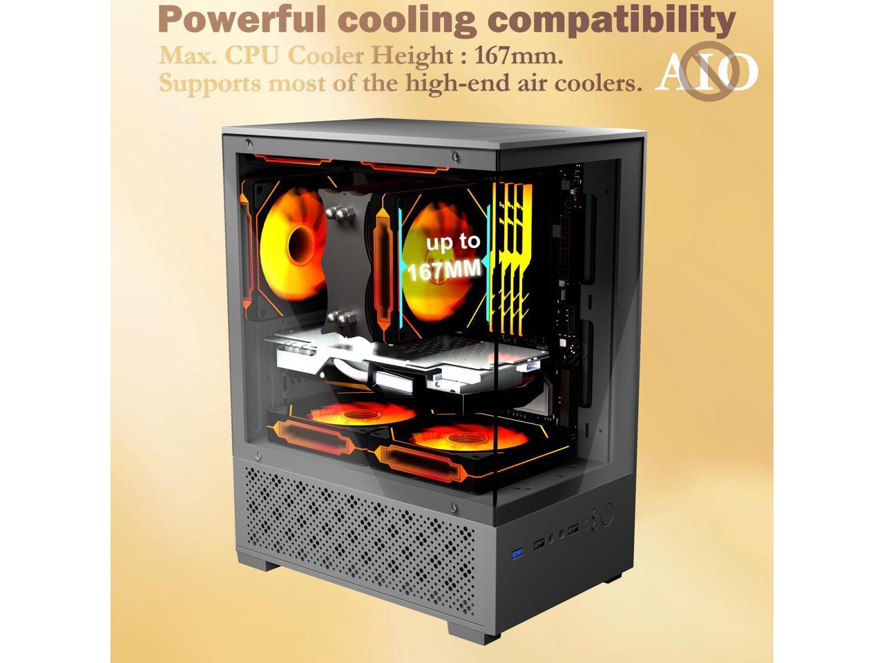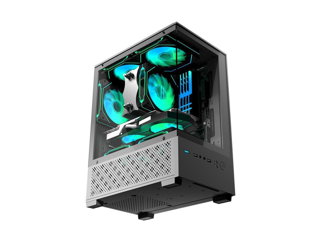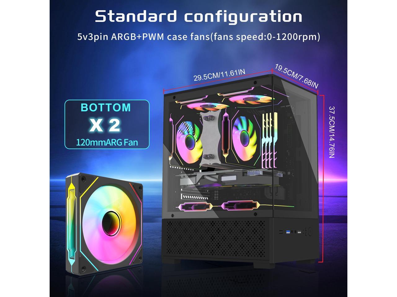 Micro ATX Case, MATX,ITX PC Case with 2 X 120mm ARGB Fan Pre-Installed, Panoramic View Tempered Glass Front & Side Panel, Black