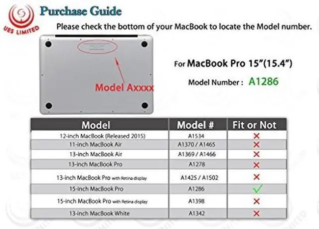 Guide: There is a simple way to help you find the matched case Compatible with your MacBook from these various version cases, Before ordering, please double check your MacBook's model number (Axxxx) on the bottom of your laptop as the images show. **This case is only Compatible with 15-inch MacBook Pro with CD ROM,