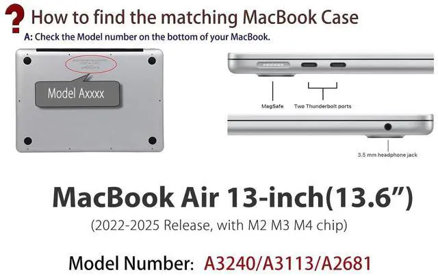 Compatible with: MacBook Air 13-inch with M2/M3/M4 chips (2022 2023 2024 2025 Release, Models A3240/A3113/A2681). This case only fits MacBook Air 13" dimension (L x W x