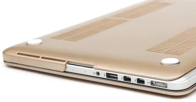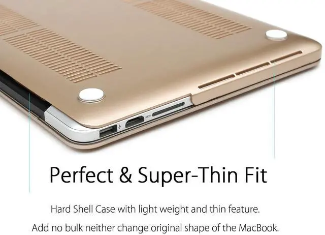 Ports: Case Design lets you Open/Close your MacBook all the way and Access to all Ports. *Crafted with vent slots to ensure proper heat dissipation. *No cut out design, Apple Logo Shine through the case only the MacBook is on.