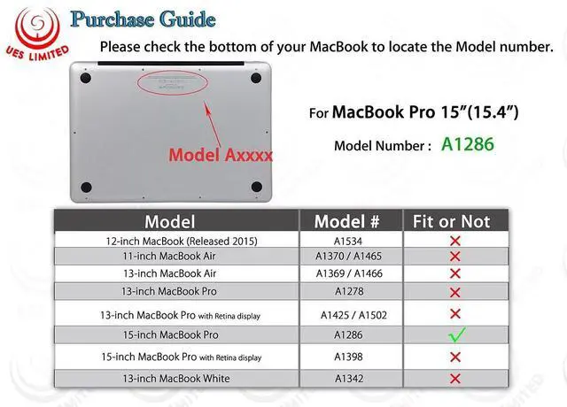Guide: There is a simple way to help you find the matched case Compatible with your MacBook from these various version cases, Before ordering, please double check your MacBook's model number (Axxxx) on the bottom of your laptop as the images show. **This case is only Compatible with 15-inch MacBook Pro with CD ROM,