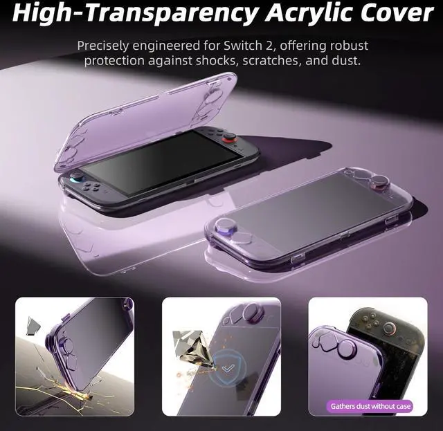 [(Durable Acrylic Case for Switch 2)] Accidents happen--this protective case for Switch 2 is built to handle them. Made from sturdy translucent purple acrylic, it shields your console against sudden drops, heavy stacking, and everyday dust. Whether it's placed under a pile of books, next to a cluttered desk, or accidentally knocked off a shelf, this case acts as a reliable armor to keep your device safe in real-life environments. A must-have among for Switch 2 accessories, especially when storing your device between uses.