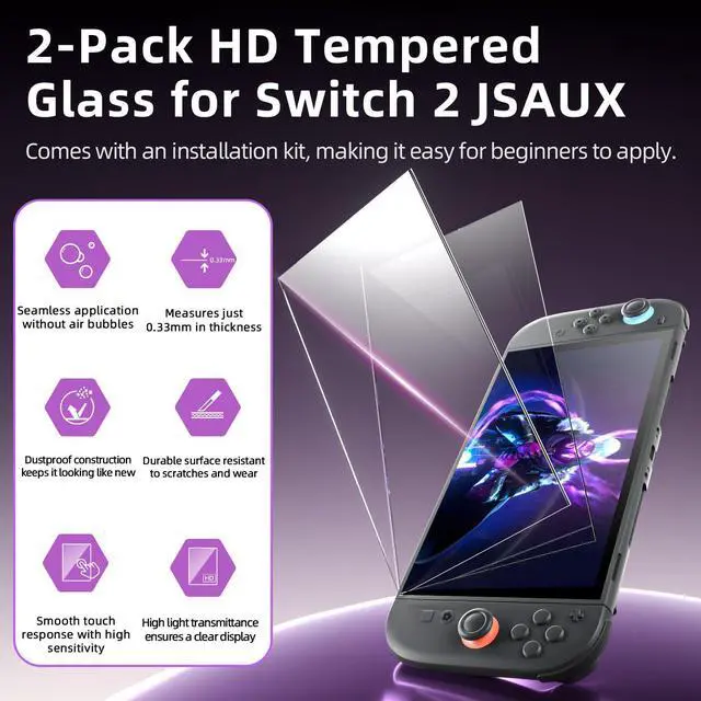[(Stylish Display & Travel Shell)] With its eye-catching translucent purple design, this compatible with Nintendo Switch 2 case doesn't just protect--it elevates. Use it to showcase your console on a shelf, gaming station, or desk when not in use. And when you're on the move, the rigid structure prevents pressure damage in backpacks or luggage. Whether at home or packed as a for Switch 2 carrying case, it's the perfect mix of form and function.