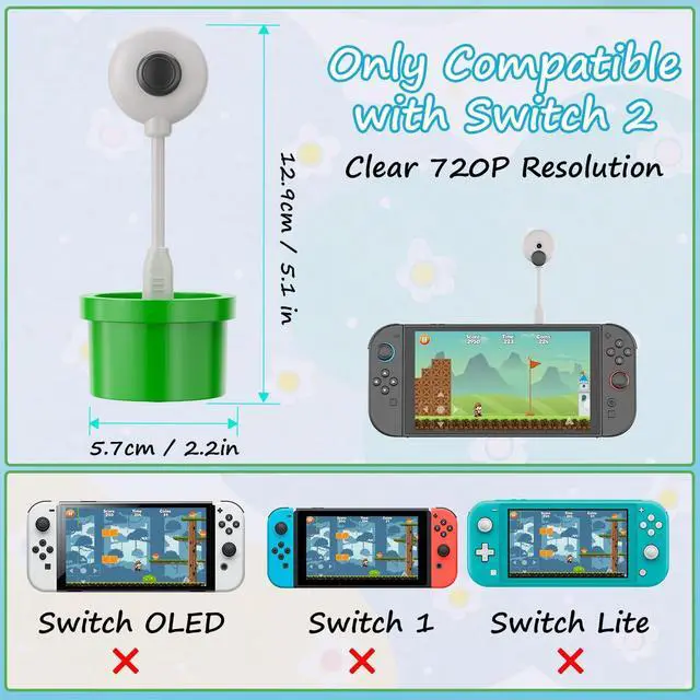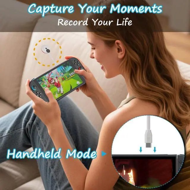 Ideal for use as a Switch 2 camera or HD webcam ^^ Adjustable Viewing AngleCustomize your perspective with a flexible, tilt-friendly design. Whether you're gaming or chatting, easily adjust the Switch 2 camera to get the best view without moving your console