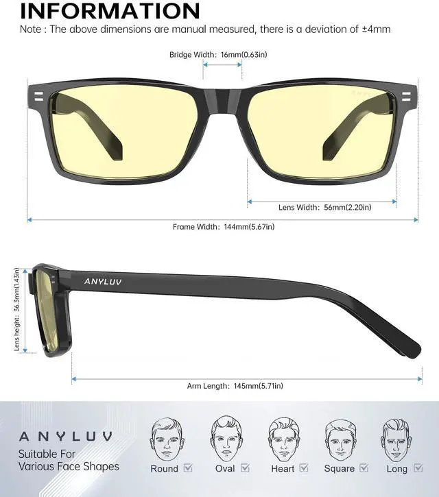 ANYLUV Blue Light Blocking Glasses for Men Anti Blue Light Glasses for Men Women, Eye Strain Relief for Computer Gaming