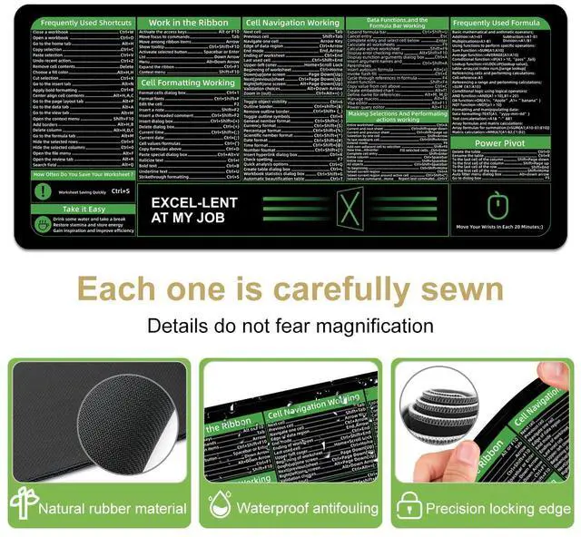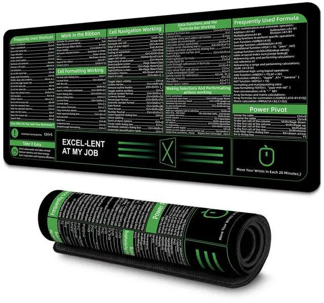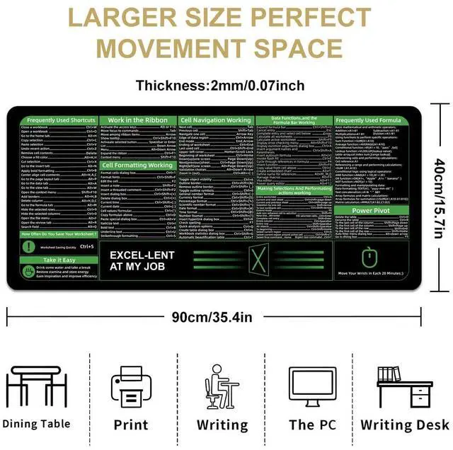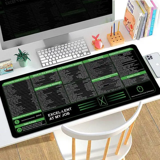Boaulee Office Excel Cheat Sheet Desk Pad, Gaming Excel Shortcuts Mousepad, Large Mouse Pad for Desk, 35.4"x11.8" XXL Computer Desk Mat, Anti Slip Keyboard Pad with Shortcuts-ts1068