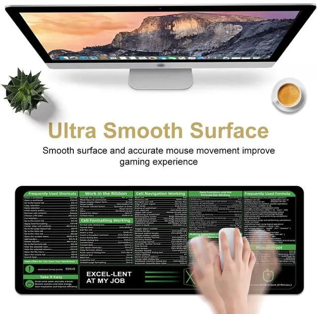 Boaulee Office Excel Cheat Sheet Desk Pad, Gaming Excel Shortcuts Mousepad, Large Mouse Pad for Desk, 35.4" x 11.8" XXL Computer Desk Mat, Anti Slip Keyboard Pad with Shortcuts-ts1068
