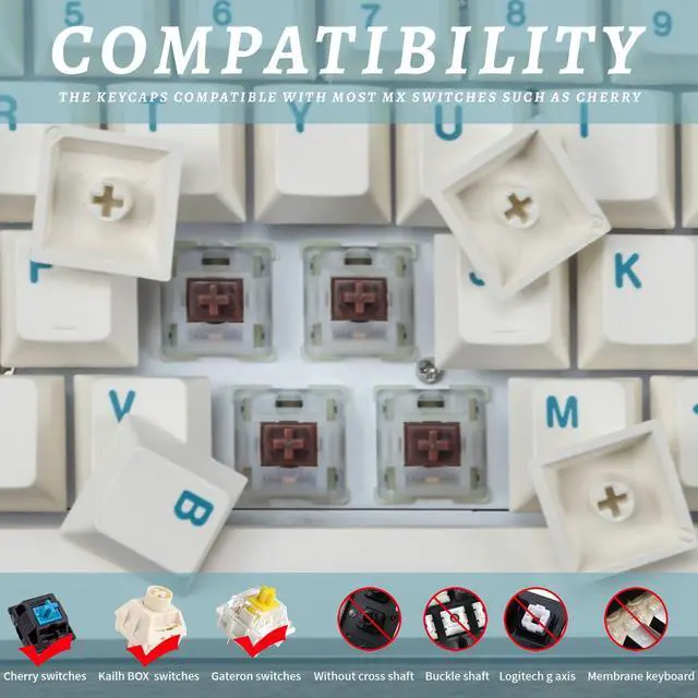 4. Suitable for most 60/87 TKL/104/108 mechanical keyboards, MX switches (such as Cherry MX, Kailh, Outemu, Gateron, etc. ) mechanical keyboards. However, some keyboards may have different sizes of spacebar/Ctrl/Win/menu and Alt keys than this keyset, so if you are not sure of the keycap size, you can check with us.