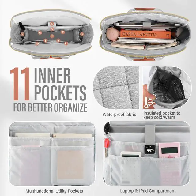 • Large Capacity: The tote bag for women is 14.5"L x 6" W x 11"H, feature with 10 inner pockets and compartments to hold all your daily necessities and nurse items. The padded laptop compartment of this teacher bag offers optimal protection, which can fit in a laptop and iPad conveniently. And the large storage compartment storage your pens, books, pencil case,purse even or clothes.