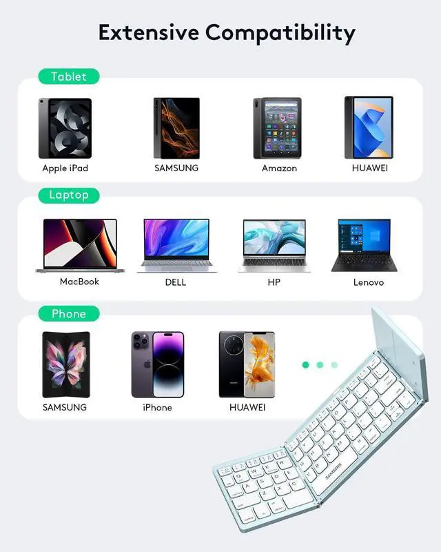 [(Folding Bluetooth Keyboard & Phone Stand Holder)] Extremely thin design of the portable folding keyboard allows you to fold it up and put it in your pocket or bag without taking up too much space. The phone stand holder, best companion for folding keyboard, gives you perfect screen angle. Near-standard size design provides accurate, fast typing, just like the desktop keyboard you are used to. Quiet keys allow you to focus on your work. Perfect gift for travel and business trips!