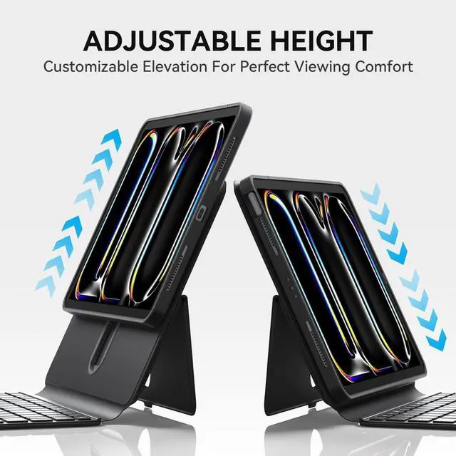 Universal Stylus Holder + Fixed Keyboard: Keyboard stays securely attached to the base. Dedicated slot fits Apple Pencil (all generations) and most third-party stylus pens.