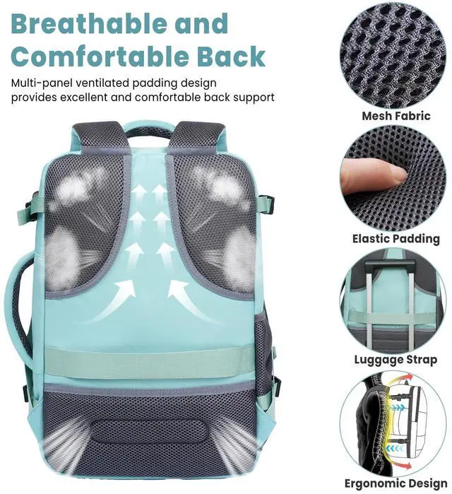 BAGAIL Travel Laptop Backpack, Carry on with USB Port, Luggage Bag for Holiday-Mint