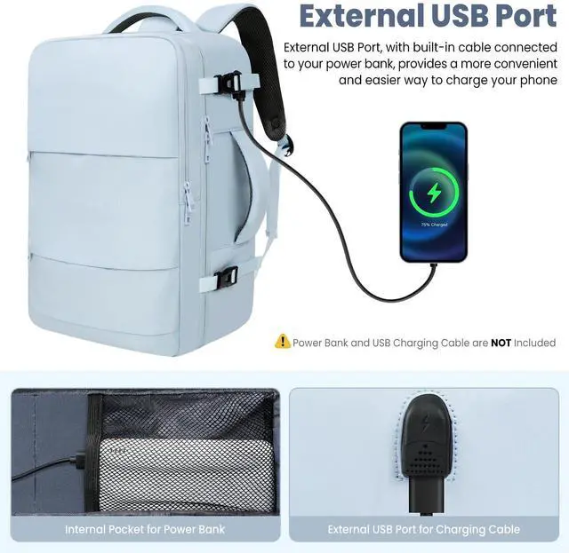 Convenient USB Port: Large carry on backpack with USB port outside and the cable to connect your power bank inside, this suitcase backpack for travel offers you a more convenient way to charge your phone while walking. Please note that the powerbank and the cable to charge the phone are not included in this travel laptop backpack. ^^ Roomy