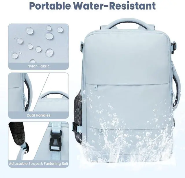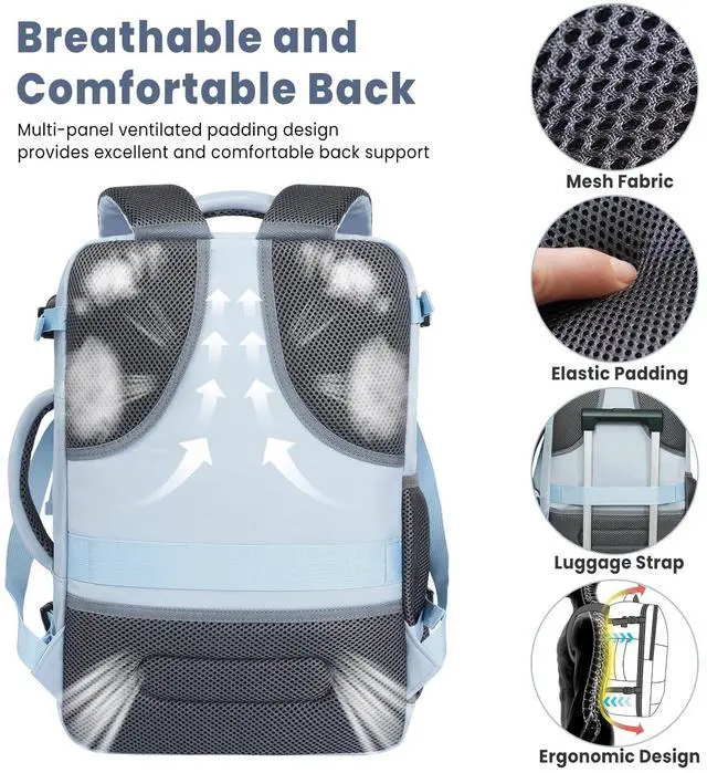 Airline Approved Laptop Backpack: 180 degree zipper closure helps you pass through security quickly. The carry-on backpack fits perfectly into overhead bins and under seats. The carry-on backpack size design (similar to a 20-inch rolling suitcase) is suitable for travel and meets airline carry-on requirements, suitable for most airlines.