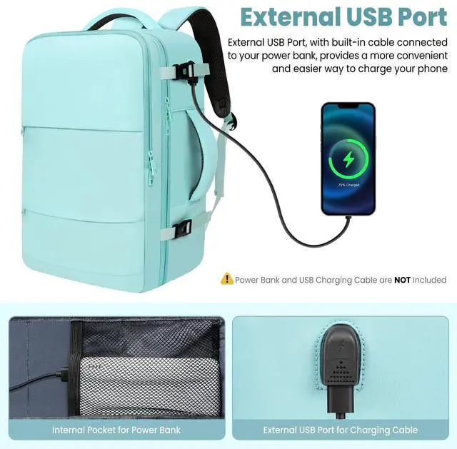 Convenient USB Port: Large carry on backpack with USB port outside and the cable to connect your power bank inside, this suitcase backpack for travel offers you a more convenient way to charge your phone while walking. Please note that the powerbank and the cable to charge the phone are not included in this travel laptop backpack. ^^ Roomy