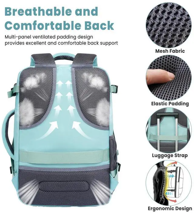 Airline Approved Laptop Backpack: 180 degree zipper closure helps you pass through security quickly. The carry-on backpack fits perfectly into overhead bins and under seats. The carry-on backpack size design (similar to a 20-inch rolling suitcase) is suitable for travel and meets airline carry-on requirements, suitable for most airlines.
