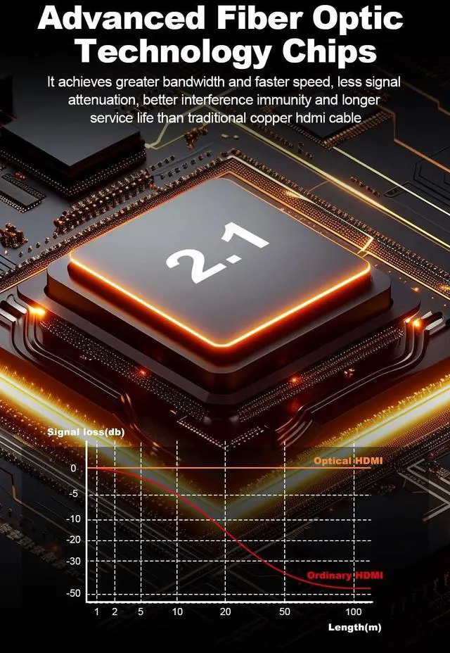 8K Fiber HDMI 2.1 Cable -- HDMI cable 50ft supports High-speed 48Gbps, 8K@60Hz, 4K@120Hz, 2K@240Hz, Dynamic HDR, Dolby Vision, eARC, HDCP 2.2 & 2.3, 3D, 32
