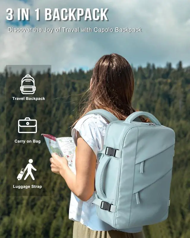 Capolo Travel Backpack for Women Men Waterproof Laptop Backpack Flight Approved Carry On Backpack Overnight Weekender Bag College Bookbag for Business, Work, Traveling Fits 15.6 '' Laptop, Lake Blue