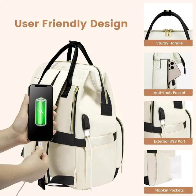 [(Durable Backpack & stylish Look)] : Made of high-quality and sturdy nylon material, this waterproof backpack for women features reinforced seams and steel frame of the main compartment which keep the perfect shape of the bag. Perfect for university, travel, business, daily use and outdoor activities. An ideal choice as work backpack purse, nurse bag, docctor backpack, teacher backpack, travel bag, etc.