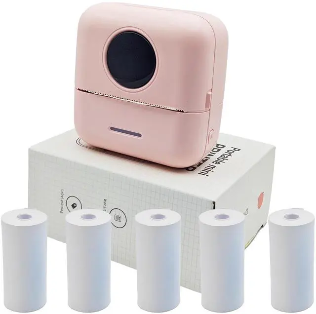 Zplumestarxx Mini Portable Printer Inkless Sticker with 5 Rolls Paper Bluetooth Mini Smart Pocket Portable Receipt Inkless Thermal Printer for iOS&Android Pink