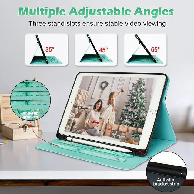 Multiple Adjustable Angle: The ipad 6th gen case has three slots with upgraded anti-slip material, you can easily adjust it to different angle positions to reach your most comfortable viewing and typing angles.