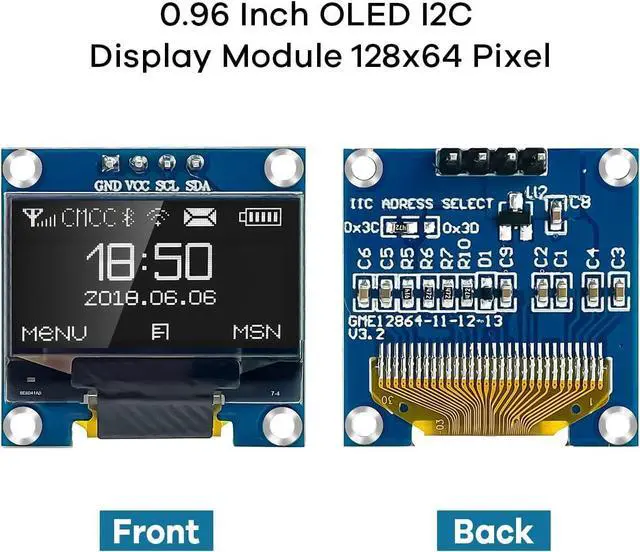 Embedded Driver IC: SSD1306. Communication: I2C/IIC interface, only two I/O ports are required.
