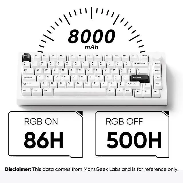Multi-device& Wireless: MonsGeek M1 V5 mechanical keyboard can be connected to multiple devices through Bluetooth, multi-host 2.4G hz (with a receiver), and wired Type-C modes with easy switch. Comes with a large 8000mAh battery, M1 V5 gaming keyboard offers strong flexibility in workplace for users with multi-devices computers, tablets and mobile devices ^^