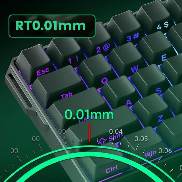 Ultra-Precise Rapid Trigger: FUN60 Ultra CNC ALUMINUM keyboard can achieve an ultra-accurate 0.01 mm rapid trigger and the actuation distance can be adjusted in 0.01 mm steps. Whether you're typing or gaming, users can fine-tune to ensure the optimal trigger for faster response times and enhanced precision during competitive gaming ^^ Highlights of