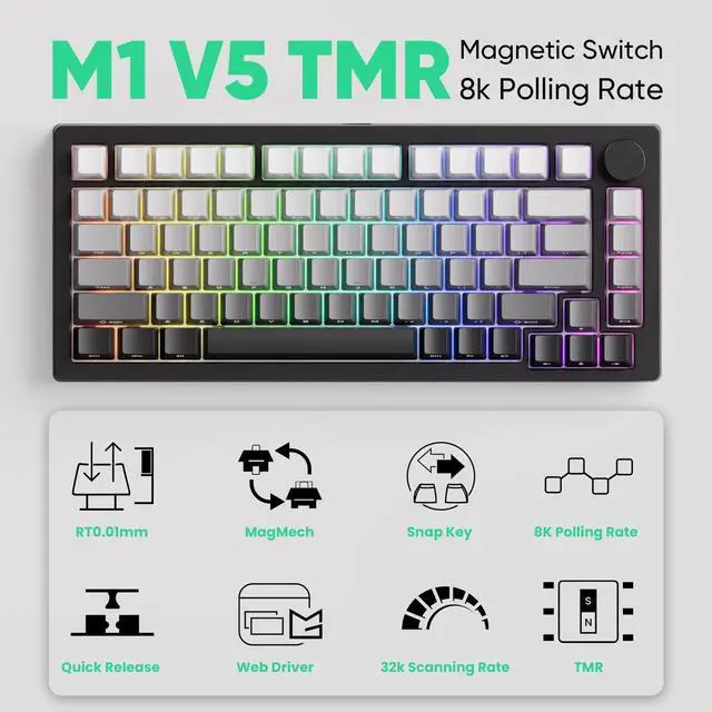 Mechanical Switches: The M1 V5 TMR keyboard offers compatibility with 5 third-party magnetic switches and mechanical switches. Imagining having only WASD / Arrow keys swapped for magnetic switches, and leaving the rest for mechanical for a classic mechanical typing experience ^^ 8K Polling Rate & 32K