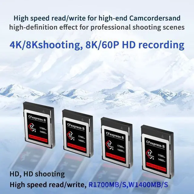 High-Speed: CFexpress Type B card high-performance for data transfer and rapid storage, speeds up to 1700MB/s read, 1400MB/s write ^^ 8K