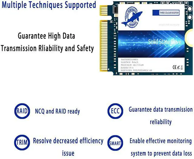 It is equipped with error correction code (ECC) technology to improve the reliability of data transmission, correct errors in data transmission, and protect the security of data transmission. ^^ Excellent Performance Compared with SSDs in the past, 2230 SSD have less noise and heat during operation. They use intelligent temperature management and reassuring cooling design to reduce power consumption and extend the battery life of laptops. It has excellent impact resistance and vibration resistance, greatly improving the durability of SSD. ^^ 5-Year Warranty Dogfish SSD have strong industry reliability. Our retail drive comes with a full warranty for complete support.